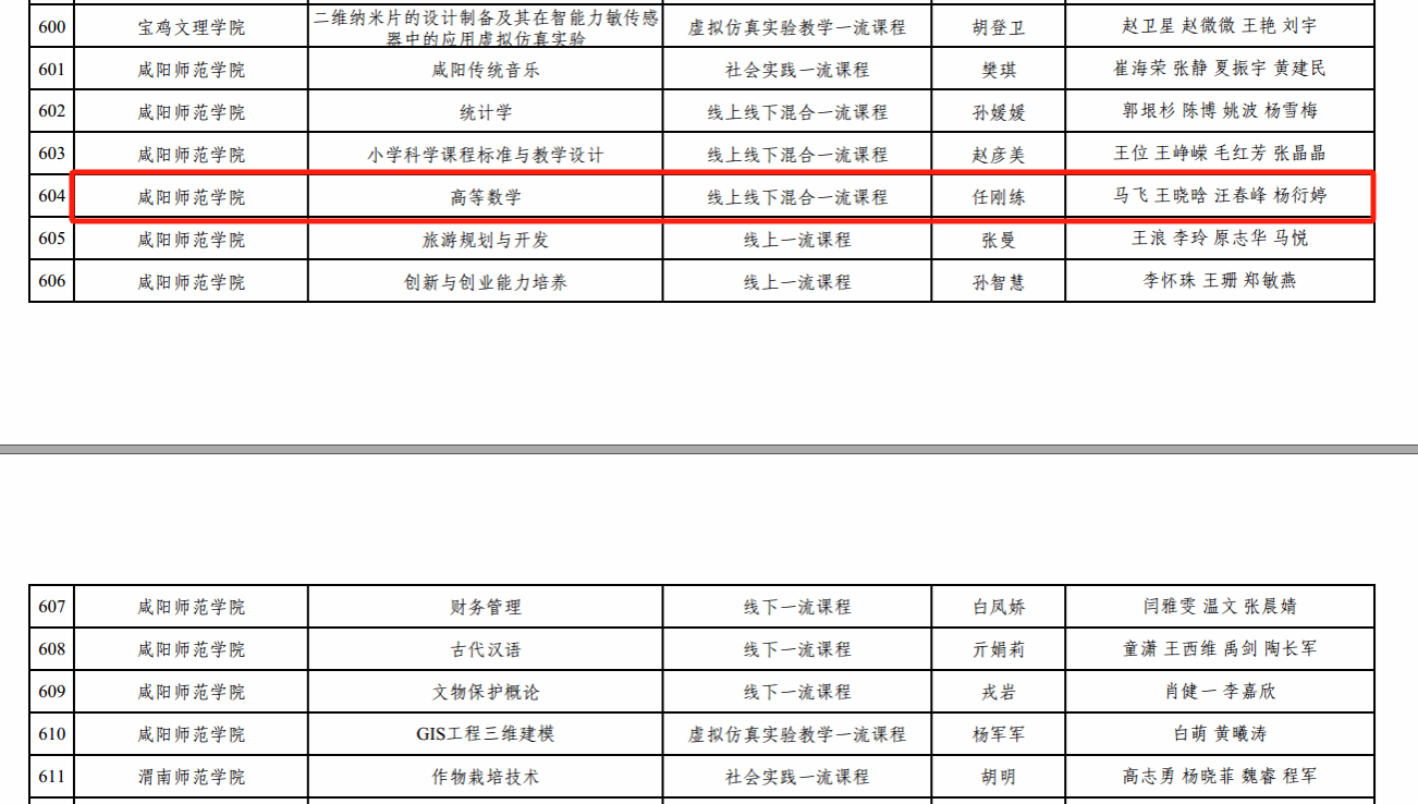 近日,陕西省教育厅发布《陕西省教育厅关于公布第三批省级一流本科课程认定结果的通知》(陕教函[2024]243号),公司共获批10门省级一流课程,其中公司由任刚练教授为课程负责人的高等数学入选线上线下混合一流课程
