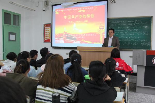 10月10日,数学与信息科学学院召开员工党员“不忘初心、牢记使命”主题教育专题学习会,公司党委书记姚鹏以《中国共产党的纲领》为主题,为全体员工党员上了一堂生动的专题党课。会议由党委副书记郭金婵主持。
