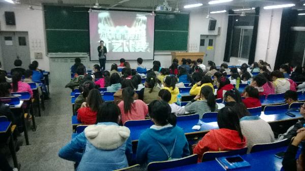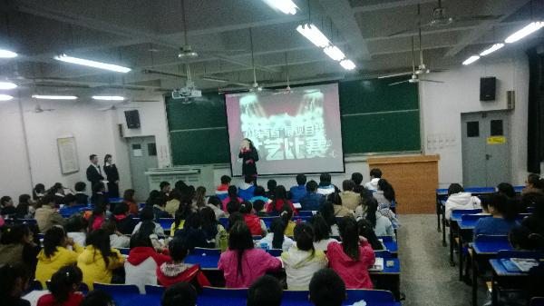 带着青春的梦想,唱响时代的主旋律。怀着青春的憧憬,谱写人生的新篇章。10月27日晚7:00,由数学与信息科学学院团学联文艺部举办的以“青春飞扬,展现自我”为主题的才艺大赛在2号楼310教室隆重举行。出席本次大赛的评委有公司音乐学院的特邀嘉宾,数信院团学联主席、副主席、各部部长、副部长,参赛选手及2013全体新生200余人。 比赛开始,由两位主持人依次介绍了担任本次大赛的评委及各位参赛选手。同时,对大赛的流程,评分的细则进行了说明。通过参赛选手的精心准备,整场比赛精彩不断,惊喜不断。一首首温柔浪漫的英文歌曲,悦耳动听的乡间小调,还有时尚炫酷的流行歌曲,带给在场的每一位观众触动心灵的感觉。选手们积极表现自我,展现风采,将赛场气氛推向高潮,迎来观众们的阵阵掌声。
