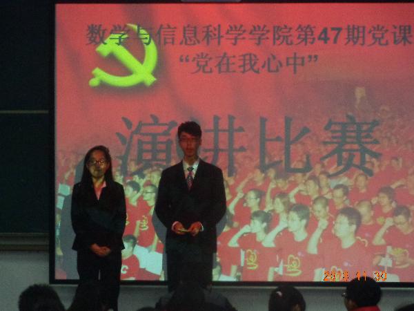 11月29日,数学与信息科学学院分党校第47期组织举办了以“党在我心中”为主题的演讲比赛。