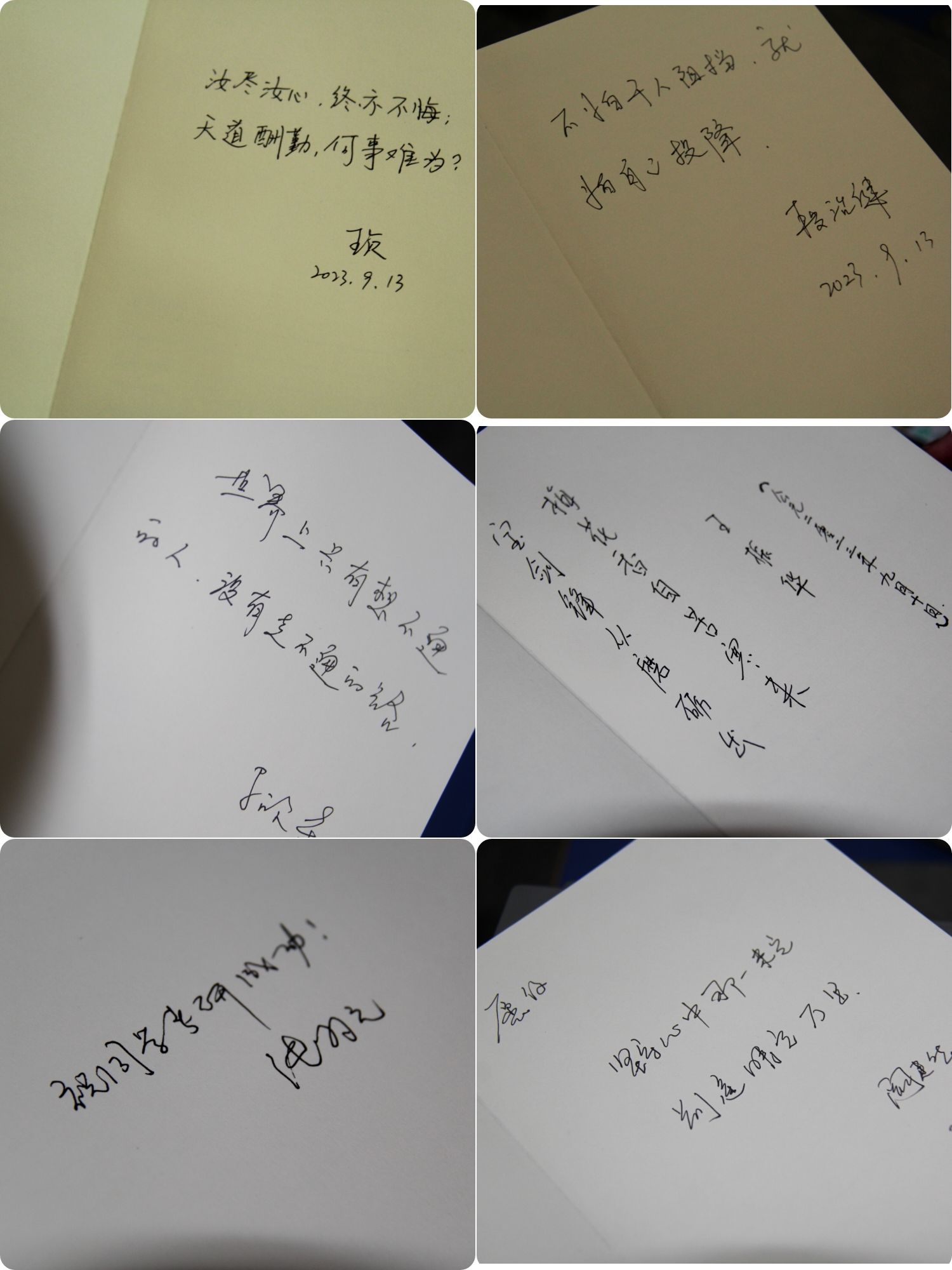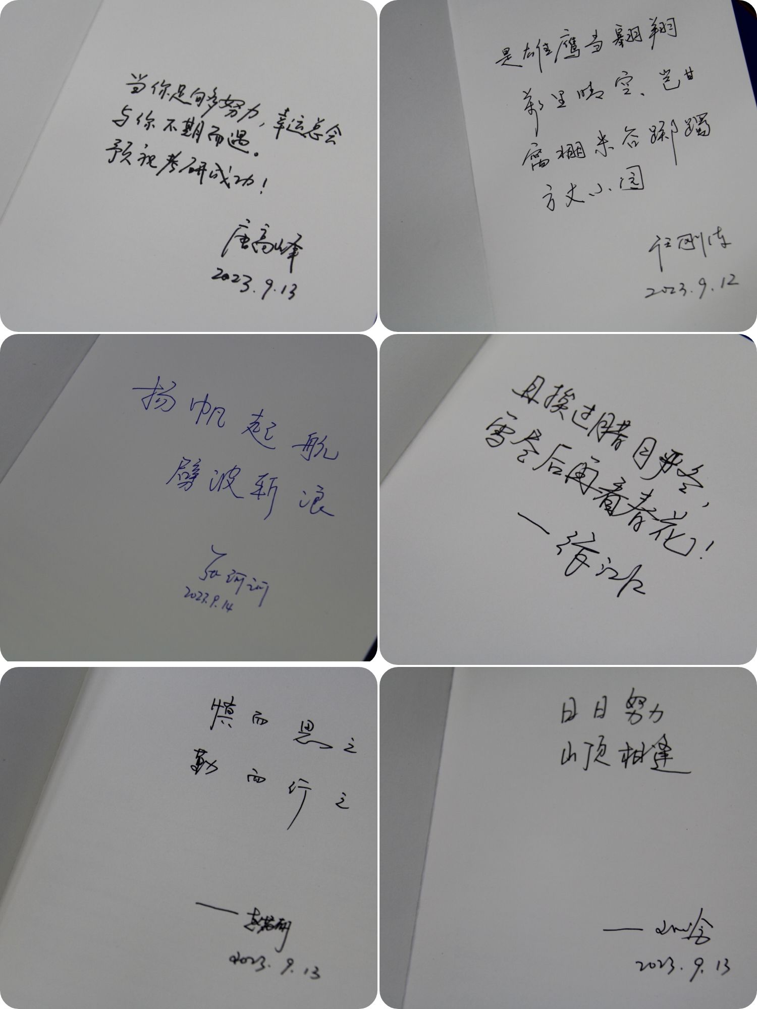 会后,学院为每位考研员工发放了有学院老师亲笔写的祝福语的笔记本,为同学们鼓劲加油。