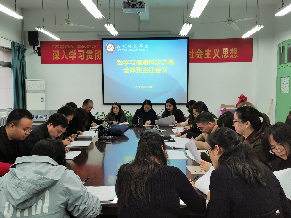 11月6日,数学与信息科学学院召开全体班主任工作部署安排会,公司党委书记、副书记、学工办主任、辅导员及全体班主任参加了会议。