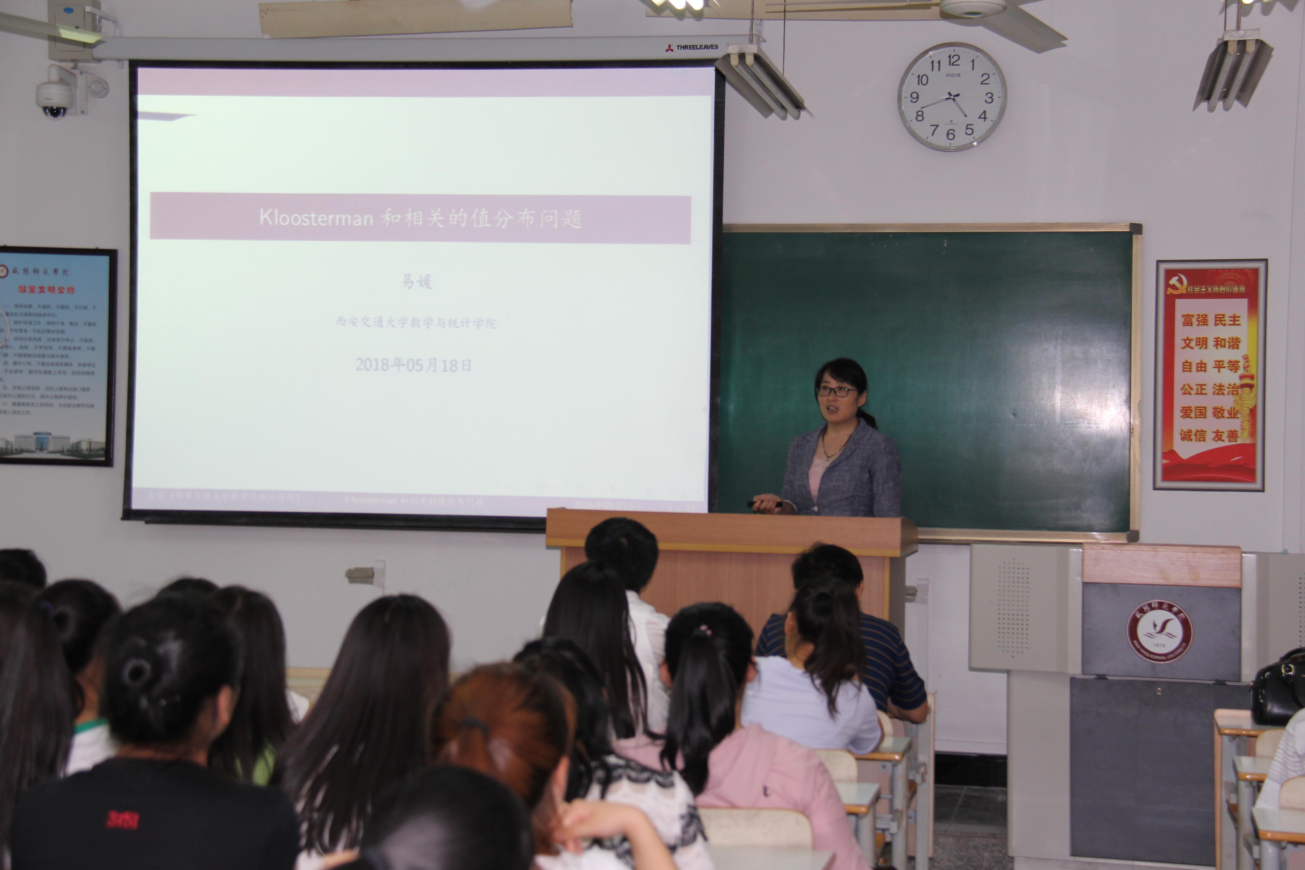 5月18日,西安交通大学威廉希尔中国官网副经理易媛教授应邀以《Kloosterman和值分布问题》为题,为公司师生作了学术报告。报告会由数学与信息科学学院副经理任刚练教授主持。