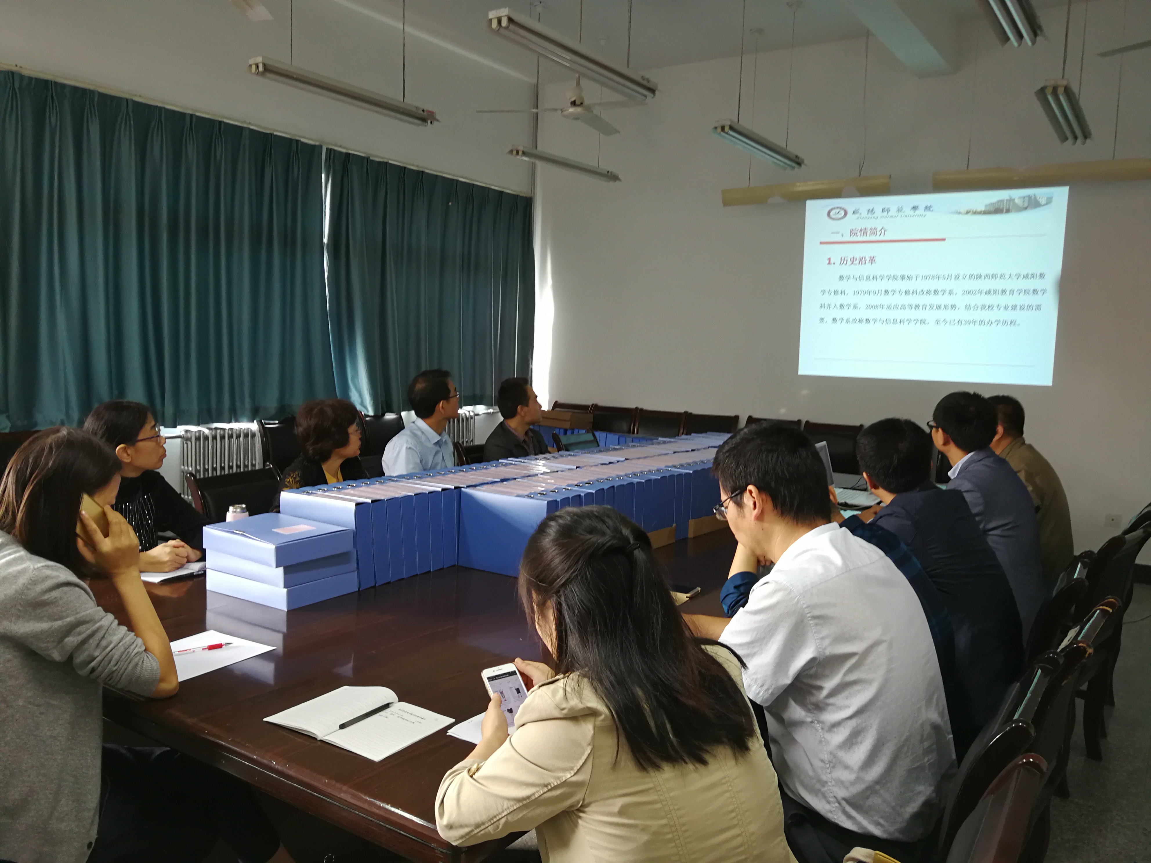 汇报会上,副经理任刚练首先以PPT形式介绍了学院的总体情况。接着汇报了数信学院本科教学工作审核评估阶段工作方案,工作方案分迎评准备和专家进校两个阶段,在迎评准备阶段学院着重落实了支撑材料的充实完善、教学文档的整改规范、专业建设规划和教学大纲的修订编印、“精彩一课”教师课堂教学演练、楼道和实验室布置等具体工作;在专家进校阶段,成立了七个工作小组,负责审核评估专家组在校期间的指挥、调度、协调、接待、服务等工作。