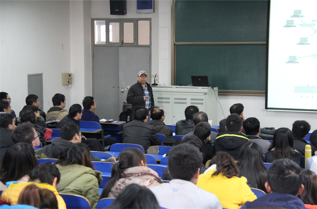 在报告的开始,李智教授介绍了“6degreesofseparation”理论并和全场听众进行互动式问答交流,报告随后引出复杂网络的定义及其特点。复杂网络的研究对象是由大量节点以及节点的相互作用所组成的网络系统整体行为,同步现象作为复杂网络系统的一个基本特征,普遍存在于生活之中,如桥面共振、剧院里响起的掌声等。由于其所具有的巨大潜在应用,同步现象已经成为非线性科学领域的一个研究热点。另外,报告还对复杂动态网络系统同步控制理论进行了介绍,李教授用影像展示了他带领的学术团队所研制的多移动机器人在队形保持和跟踪控制方面的动态效果。报告内容所涉及的一些数学基本工具(如矩阵理论)对在场师生而言并不陌生,通过听取报告,大家对数学的应用有了一个新的认识。报告的最后,李智教授简单列举了近年来他在复杂网络同步与控制理论方面所取得的部分重要成果。李智教授还就学术研究、考研等问题和现场师生进行了交流互动。