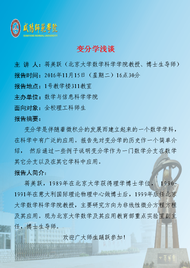 来源:威廉希尔中国官网数学学院 作者:数学学院 点击数: 发表时间:2016-11-14 00:00:00